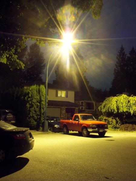 Although I may have wasted two-hundred-some-odd-pictures (standing out in the middle of the park in the heavy rainstorm in my trenchcoat and an umbrella with a really cool wooden handle, camera on a tripod, whirling around at every flash, cussing out my ears at every missed shot; I'm pretty sure my neighbours think I'm insane) trying unsuccessfully to capture the lightning of the great storm on the 25th, I snapped this one right afterwards. I like it.